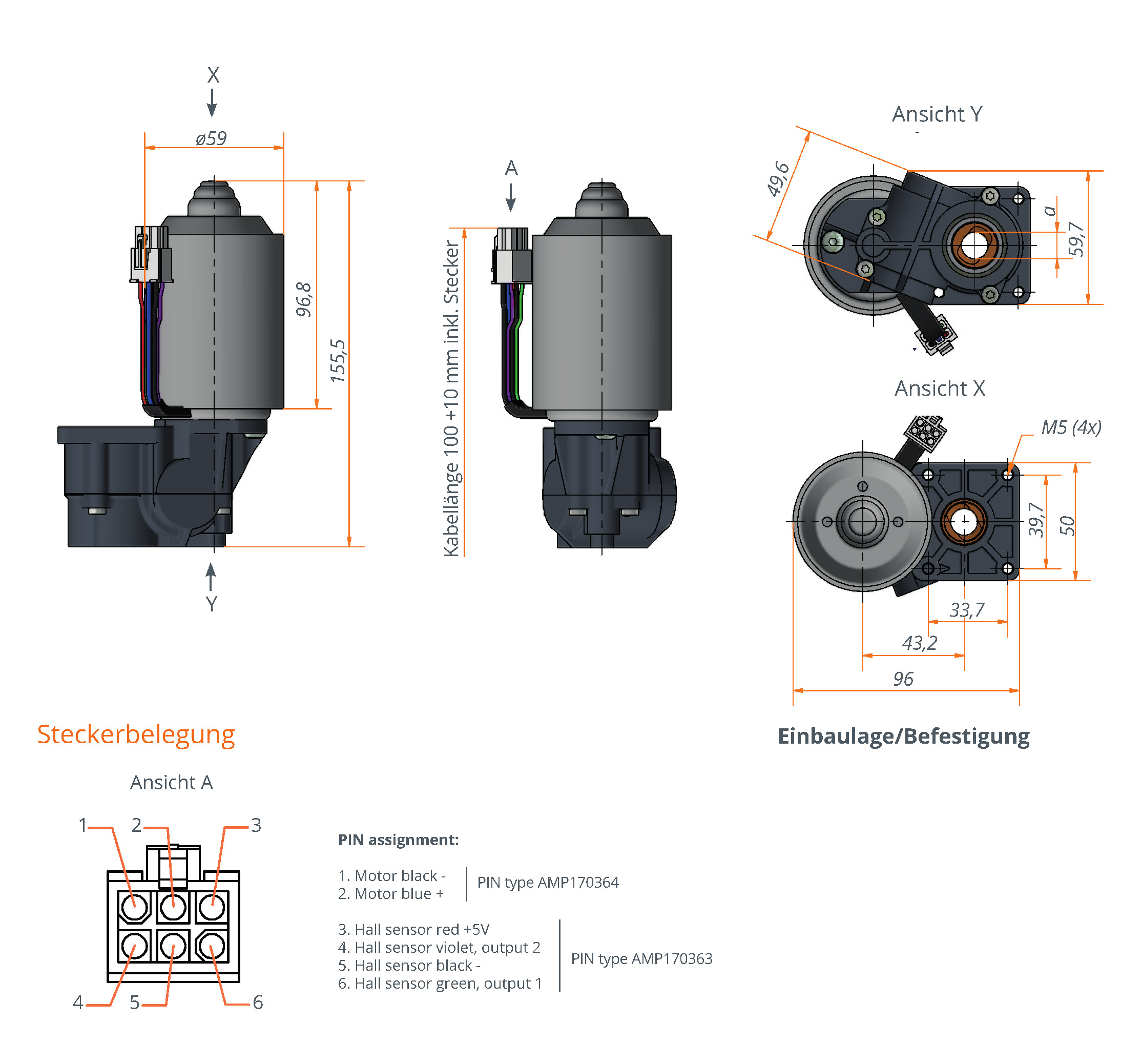 - Zwei integrierte Hall-Sensoren zur Erfassung der Umdrehungen und